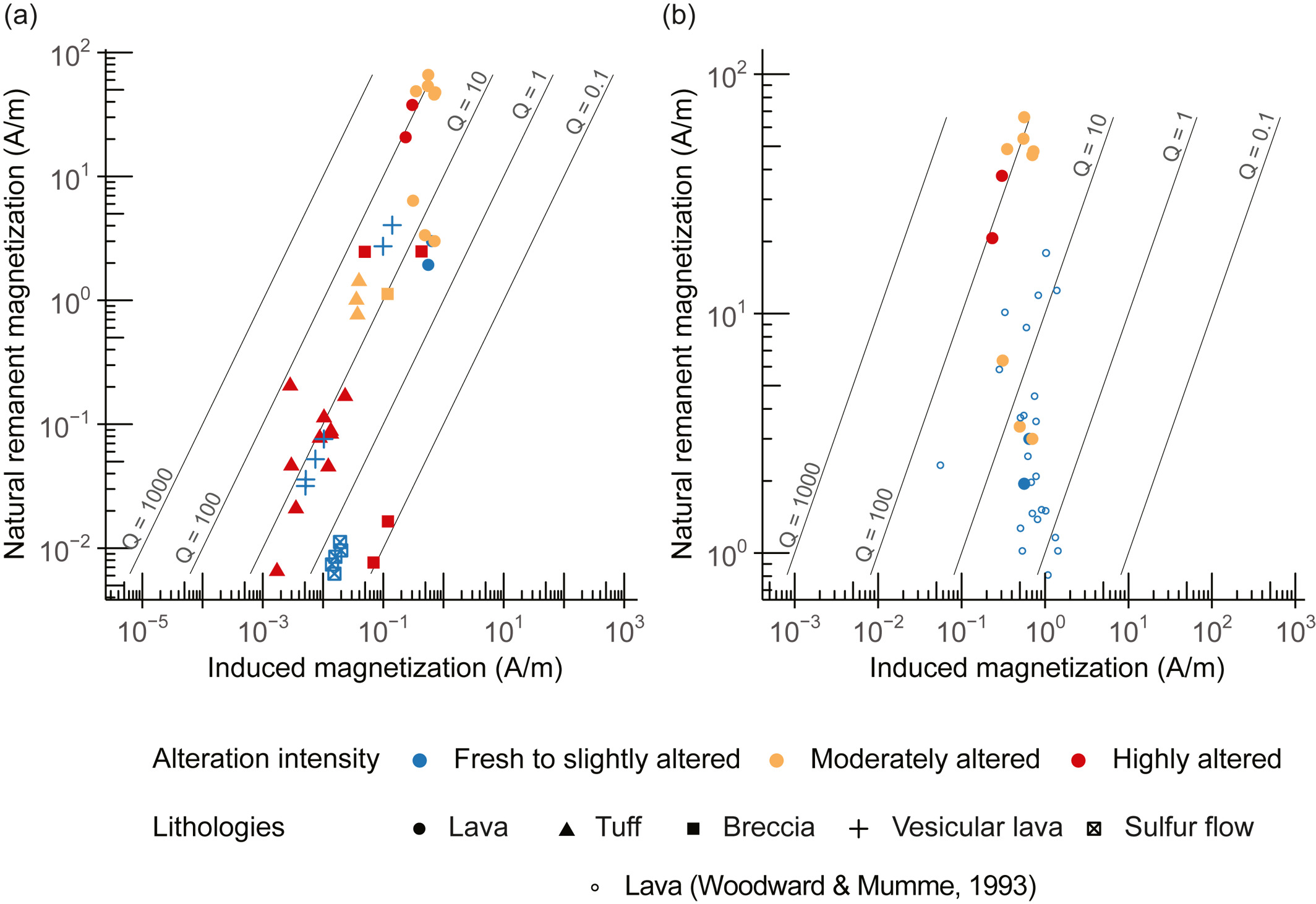 • Hydrothermally altered lavas can carry higher remanent magnetization than fresh lavas.